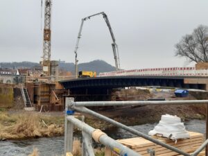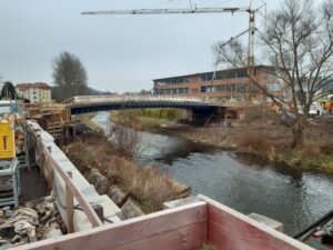 Die Bauarbeiten an der Friedrich-Naumann-Brücke im Rahmen der Hochwasserschutzmaßnahme Eisenach, Maßnahmenkomplex III konnten seit Beginn der Baumaßnahme im Oktober 2020 bisher entsprechend des Bauablaufplanes umgesetzt werden.