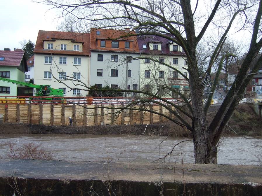 Im Herbst 2020 wurde mit dem Ersatzneubau der Friedrich-Naumann-Brücke im Stadtgebiet Eisenach begonnen. Im Rahmen dieser Maßnahme erfolgt die Errichtung von Teilabschnitten der geplanten Hochwasserschutzwände des Maßnahmenkomplexes III. Infolge der höher anzulegenden Konstruktionsunterkante des neuen Brückenbauwerks muss auch der Kreuzungsbereich von Tiefenbacher Allee, Stresemannstraße und Grabental neu gestaltet werden. Die bestehende Brücke soll ab Mitte März 2021 abgebrochen werden. Die seit mehreren Jahren für Fußgänger und Radfahrer in Nutzung befindliche Behelfsbrücke liegt zu nah am Baufeld. Daher wird eine neue Behelfsbrücke ca. 30 m unterstrom des bestehenden Brückenstandorts errichtet. Bis Ende Februrar 2021 erfolgen noch restliche Fällarbeiten. Die Bauarbeiten erstrecken sich über den Zeitraum Herbst 2020 bis ca. Anfang 2023. Mit der Maßnahme verbunden sind Verkehrseinschränkungen und Baulärm. Das TLUBN bittet die Anwohner um Verständnis.