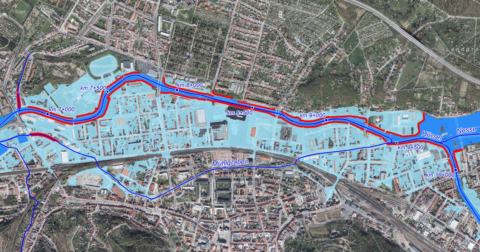 Entlang der Hörsel werden Hochwasserschutzwände errichtet. In wenigen Bereichen sind Geländemodellierungen möglich.